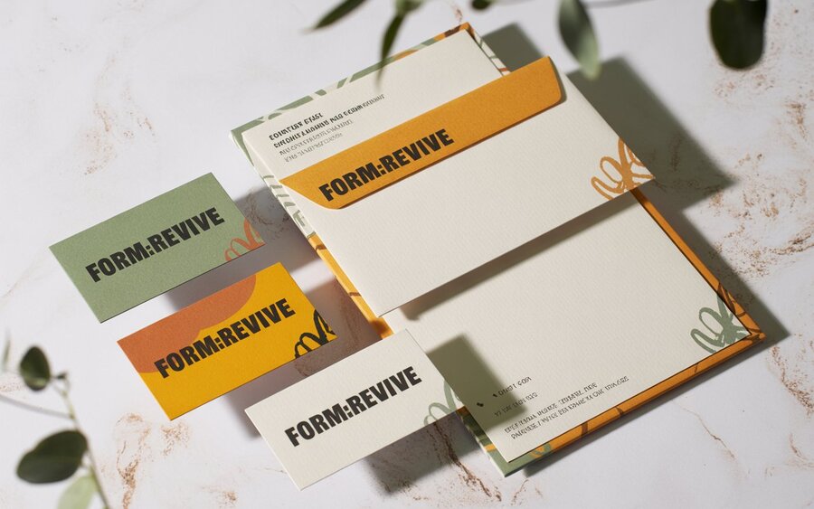 Stationery design with the brand’s identity. Minimal, yet bold with bright colors and small graffiti elements.