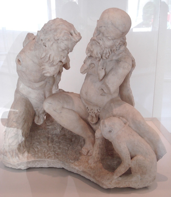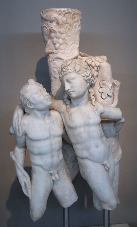 Молодой Дионис обнимает сатира-Археологический музей Салоник / Группа скульпторов с Паном, сатирой и схемой, романской копией оригинального эллинистического произведения.