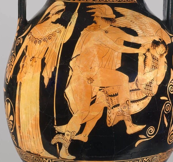 Персей, убегающий с головой Медузы, Краснофигурная гидрия, Аттика, ок. 460 г. до н. э. / Персей и Афина. ок. 400 — 385 гг. до н. э.