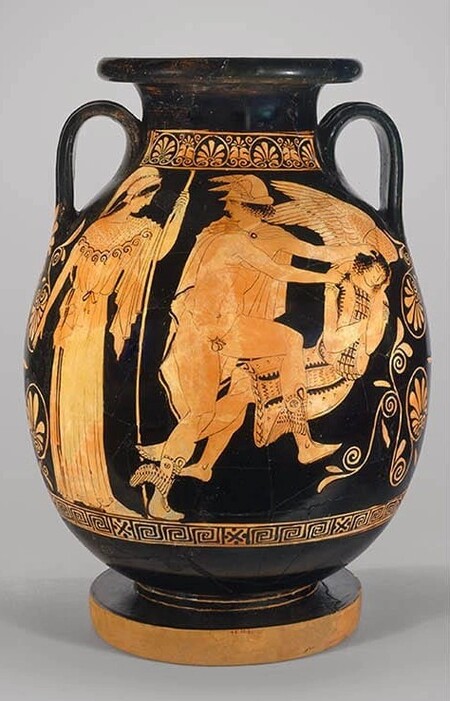 «Персей обезглавливает спящую Медузу», приписываемая Полигноту, около 450–40 гг. до н. э., Музей Метрополитен, Нью-Йорк