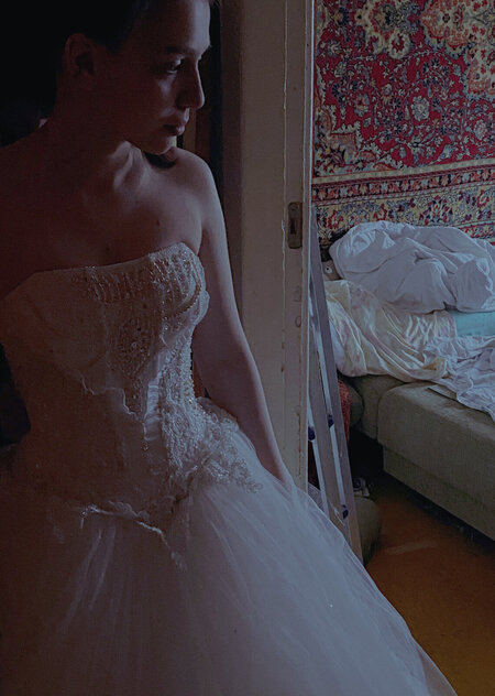 Интервью с невестой — это короткий ролик с честными ответами молодой художницы, сделавший перформативную свадьбу. Главные герой перформанса — Россия, немытая, провинциальная, какая есть. И человек, любящий её и создающий