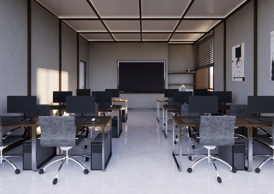 комп-класс оснащен электронной доской и 12 рабочими местами с компьютерами.