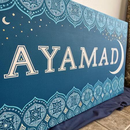 4.Realistic merch item, ainted on a canvas of deep blue, abstract white forms form a mesmerizing contrast. The shapes seem to dance across the background, evoking a sense of movement and fluidity. This painting captures a feeling of elegance and sophistication, with each brushstroke carefully placed to create a harmonious composition. The white forms appear almost ethereal against the rich blue backdrop, giving the impression of a dreamlike atmosphere. The artist’s skill in creating this captivating image is evident in every detail, making it a truly stunning piece of art. 5.A notebook cover design Painted against a deep blue backdrop, the bold white letters of «ayamad» stand out in a voluminous display. This striking image features a captivating blend of elegance and decay: the letters are delicately adorned with intricate patterns reminiscent of ancient script, giving them an air of mystical allure. The meticulous brushwork and masterful use of light and shadow create a sense of depth and texture, making the letters almost seem to jump off the canvas. This compelling painting is a testament to the artist’s skill and creativity, drawing viewers in with its mesmerizing beauty and enigmatic message. 6.A minimalist emblem for a black cap, on a canvas of deep blue, abstract white forms form a mesmerizing contrast. The shapes seem to dance across the background, evoking a sense of movement and fluidity. This painting captures a feeling of elegance and sophistication, with each brushstroke carefully placed to create a harmonious composition. The white forms appear almost ethereal against the rich blue backdrop, giving the impression of a dreamlike atmosphere. The artist’s skill in creating this captivating image is evident in every detail, making it a truly stunning piece of art.