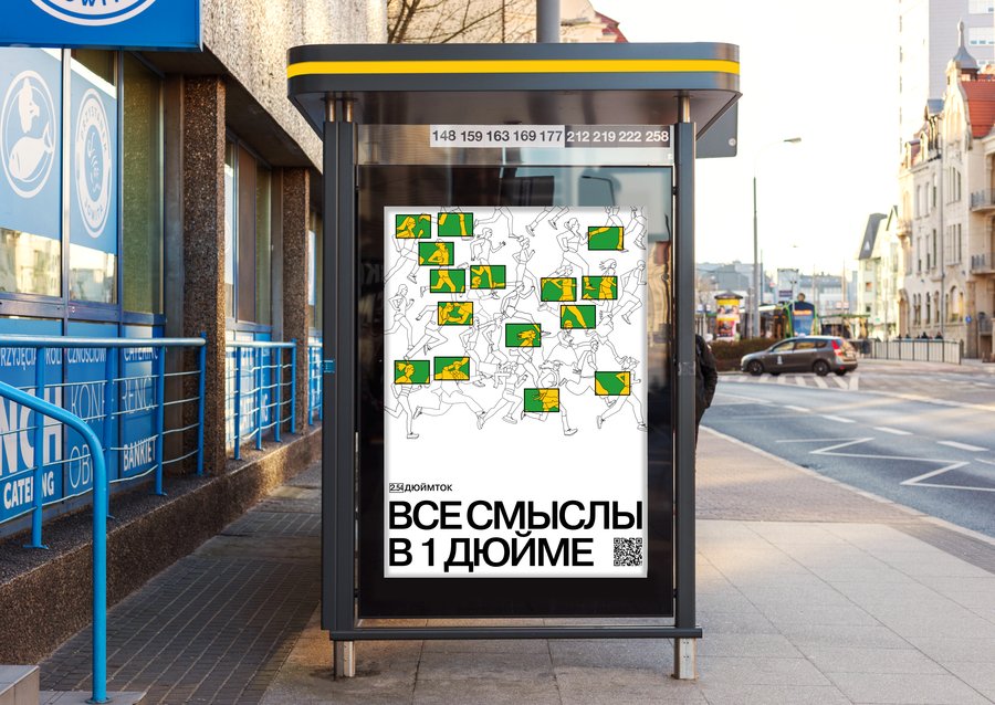 В серии постеров я показала маскота в движении и в покое — он бежит марафон и занимается йогой. Эти два состояния отражают суть приложения: короткие, но осознанные видео. «ДюймТок» — не бесконечная лента, а место, где можно быстро поделиться моментом или просто остановиться. Маскот становится символом баланса между скоростью и вниманием.