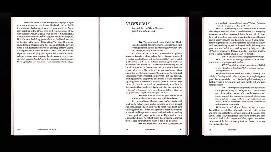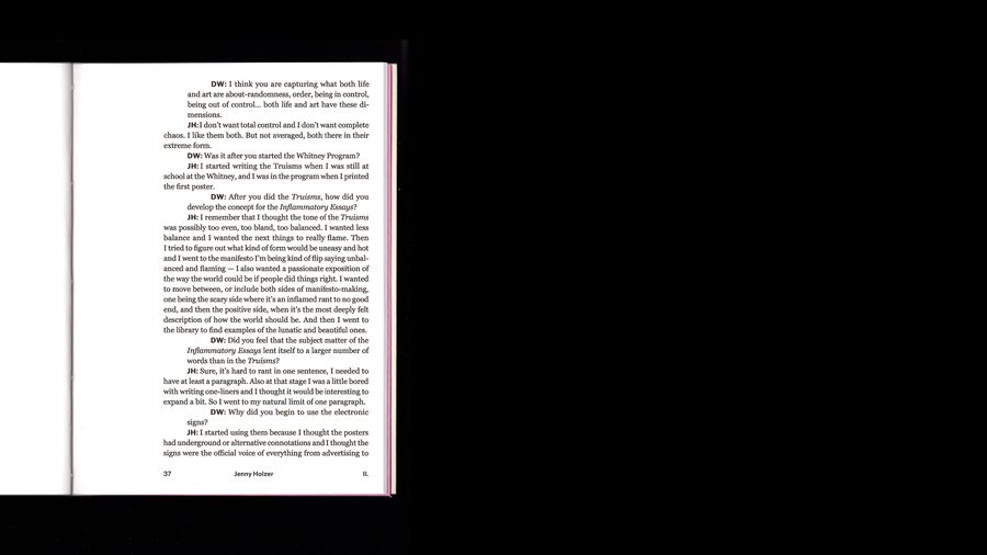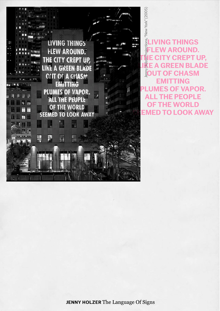 Книга исследует творчество Дженни Хольцер — американской художницы, использующей язык как главный художественный прием. Через тексты, световые инсталляции и уличные медиа она обращается к темам власти, страха, насилия и эмпатии.