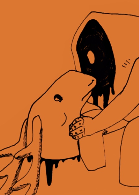Мне поступил заказ на эскиз для татуировки по песне «Слова-паразиты» группы «Дайте танк (!)». Заказчик является фанатом и выразил желание увидеть одного из персонажей клипа, Лося. Моей задачей было передать меланхоличный и уставший образ героя.