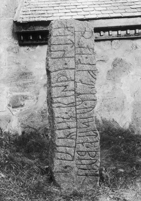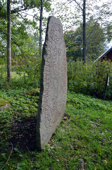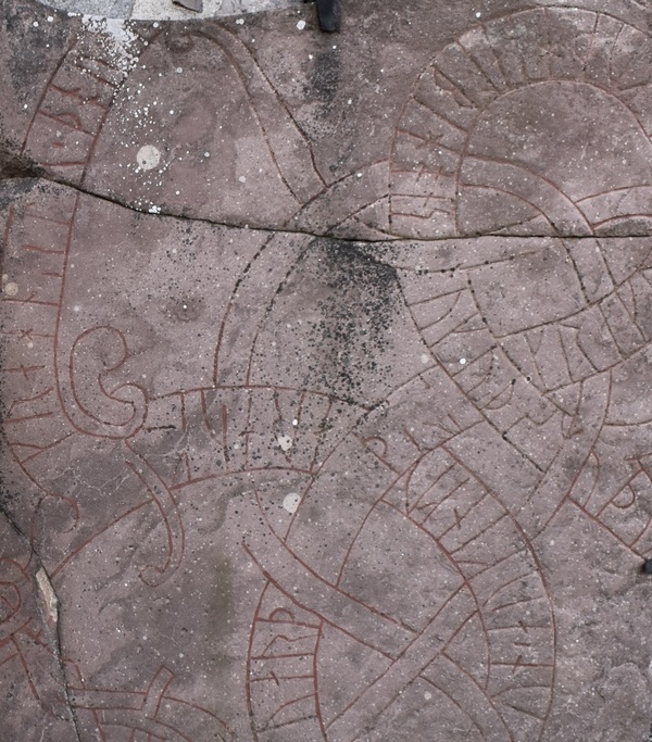 Этот камень является одним из примеров ранних попыток совмещения рисунка и текста. Руническая надпись здесь очень короткая, а изображение человека отличается высокой степенью упрощения