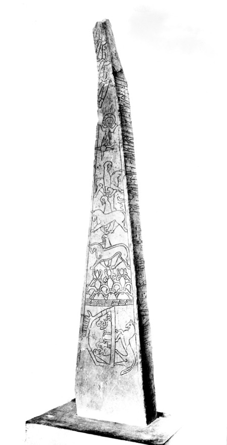 На данном памятнике изображен сюжет о Сигурде и его победе над змеем Фафниром. Этот сюжет взят из скандинавской саги, однако ряд исследователей предполагает, что языческие ценности здесь переплетаются с христианскими (Stern, 2015): змей мог быть интерпретирован как Дьявол, а личная героическая победа Сигурда — как более абстрактная, обобщенная победа над злом и коварством в мире.
