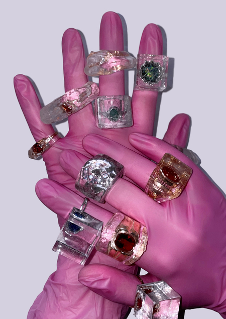 — бренд украшений, дающий вторую жизнь старым кольцам, которые больше не носят. Изделия заливаются в эпоксидную смолу, обретая новую форму, при этом сохраняя первоначальный вид.