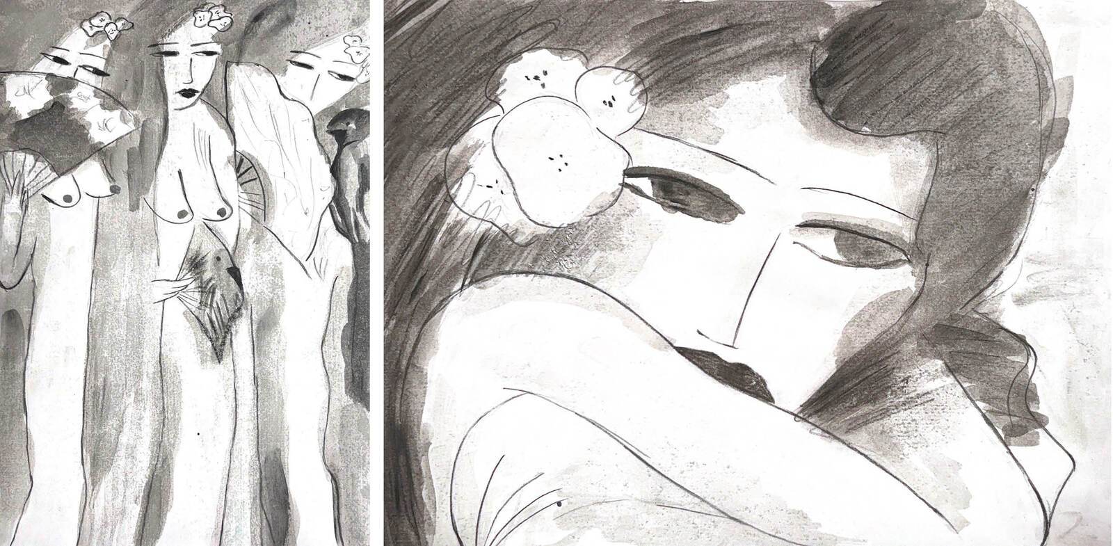 Исследование и прорисовка графических приемов и стилизации fashion иллюстраторов: