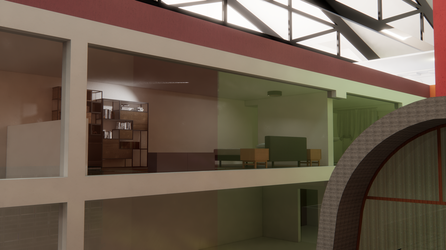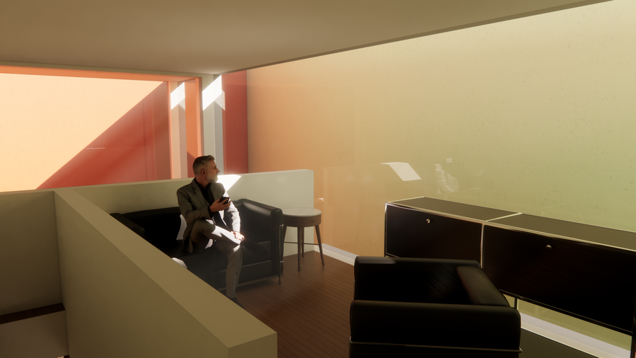 23 — Комната отдыха и смотровая на «Открытую руку» и LE MODULOR