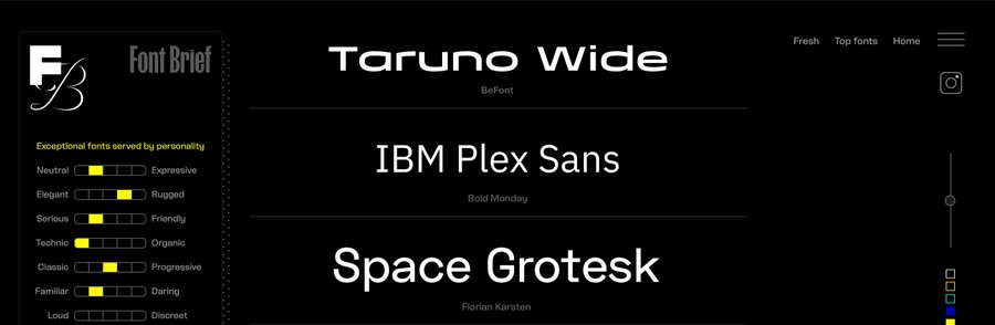 Для определения акцидентного шрифта «Taruno Wide» я использовала сервис What The Font, а для поиска шрифтовой пары обратилась к Font Brief, который подобрал наборный шрифт «IBM Plex Sans».