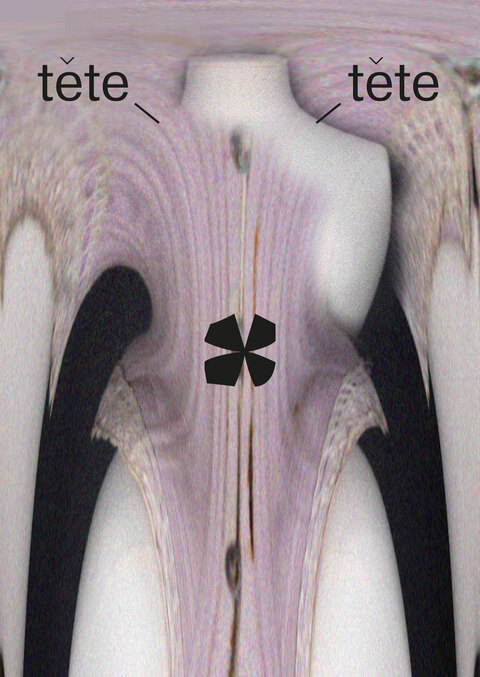Images are distorted using the distort (polar coordinates) function. The effect is partially erased, so that the body part could be guessed