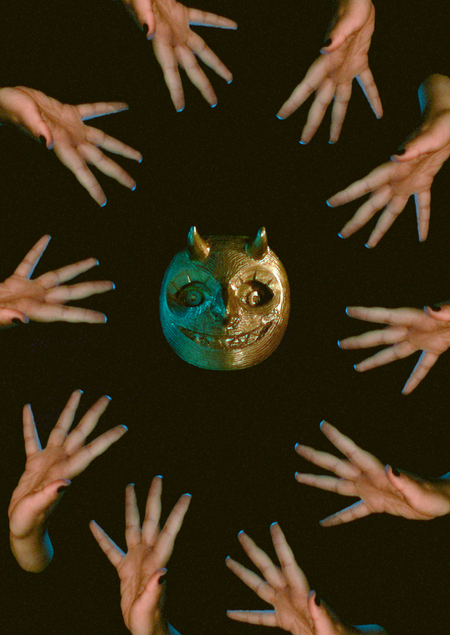 Так появилась идея о комбинации колец, которые, надетые вместе, составляют рожицу черта с подвижными глазами.