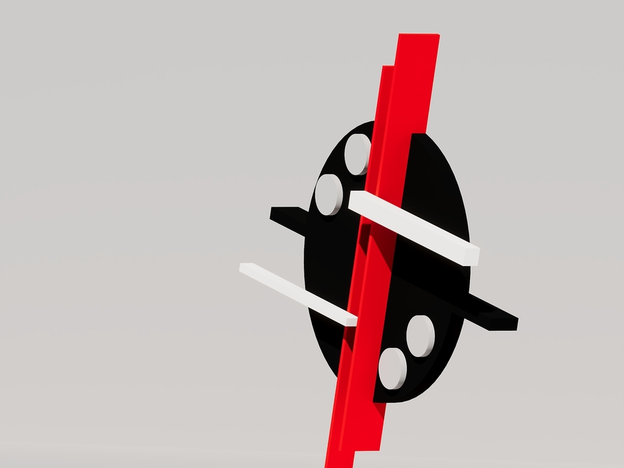 Мой арт-объект представляет из себя большие часы со сложным циферблатом и необычным механизмом, которые выполнены в стиле супрематизма Лисицкого. Они могут располагаться на зданиях, например, в порту или на вокзале.