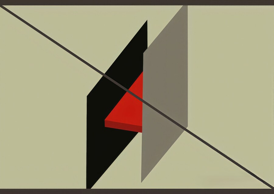 Станция — это переломный момент/переход к новому. Автор берет базовые фигуры супрематизма и добавляет объемные элементы: игра с плоскостью и объемом и привела к новой художественной форме — проуну.