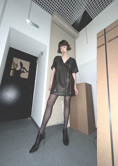 Изделие — платье Форма — прямоугольник Силуэт- oversize Рукав — полуреглан Материал — искусственная кожа