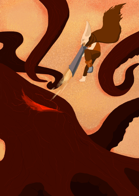 Сразитесь с финальным врагом и освободите Землю от тёмных существ. Пытайтесь взобраться по щупальцам осьминога к его голове и нанесите удар в глаза