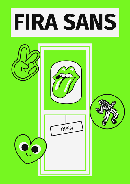 Этот проект показывает шрифт Fira Sans в необычном свете, весёлом, ярком и дерзком, используя тему и товары музыкального магазина