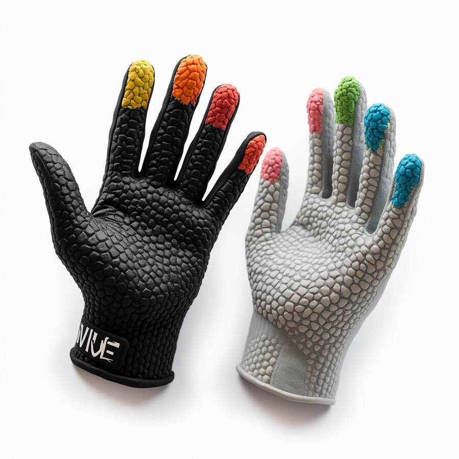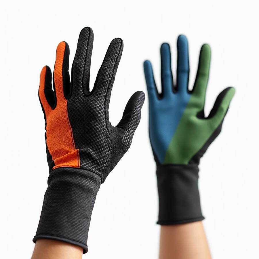prompt: generate gloves for the shoe customization brand REVIVE using the primary colors (black and white) and additional colors (red, orange, green and blue) on a white studio background