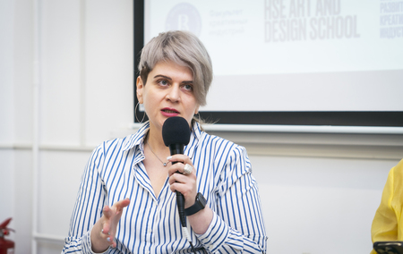 Заместитель руководителя Школы дизайна НИУ ВШЭ по учебной работе, кандидат экономических наук, координатор по вопросам развития программ дополнительного образования Татьяна Кривошеева представила образовательные продукты Школы дизайна НИУ ВШЭ, акцентируя внимание на важности партнерского отношения к обучению.
