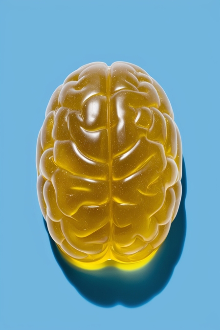 generate pattern with 3d renders of gummies in form of brain (yellow color), heart (red collor) and lungs (green)