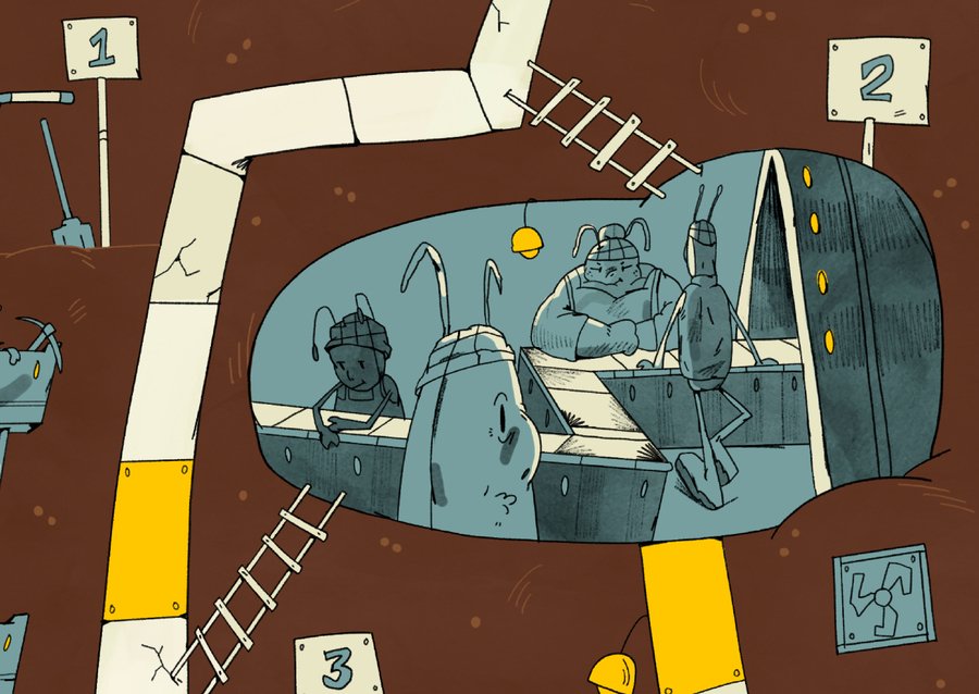 Муравейник состоит из восьми комнат и базы, которая находится наверху. В игре нужно выполнять задания и перемещатся по карте.