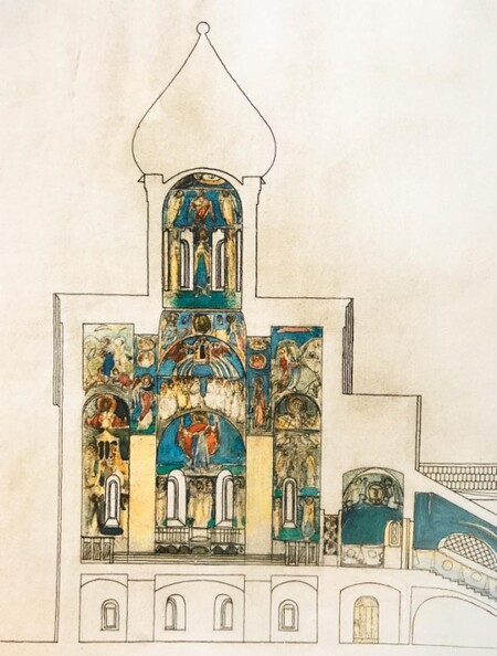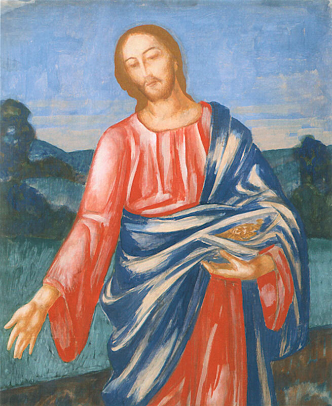 И это естественно — художник многие годы активно работал в области религиозного искусства, писал фрески, иконы, создавал эскизы мозаик и витражей.