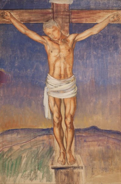 Двумя годами позже Петров-Водкин работает над распятием для Крестовоздвиженской церкви в родном Хвалынске. Сама роспись не сохранилась, однако остались эскизы, созданные художником для этой работы и ее фотографии.
