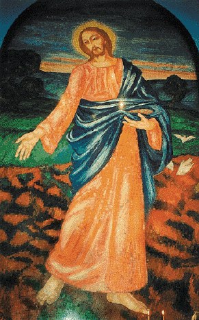 Сюжет Христа-сеятеля не является канончиным для православной иконографии. В работе видны разрабатываемые художником в то время идеи трехцветия и сферической перспективы.