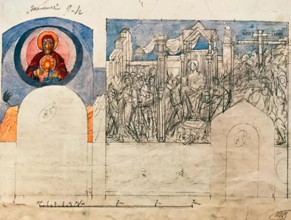 Эскизы для фрески распятия в Крестовоздвиженской церкви; 1911 г.