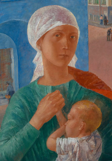 Образ Богородицы вновь навещает нас в картине того же 1920 года «1918 год в Петрограде», которую сам Кузьма Сергеевич в личной переписке называл «Петроградской мадонной».