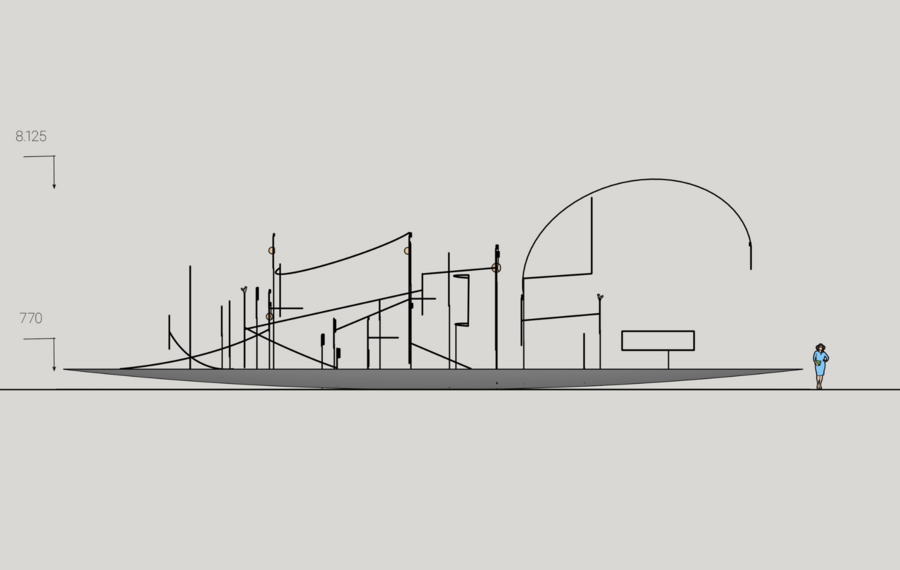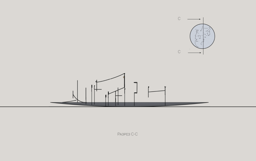 Генеральный план арт-инсталляции. Объект находится на возвышении, откуда открывается вид на город и Альпы.
