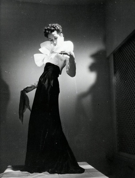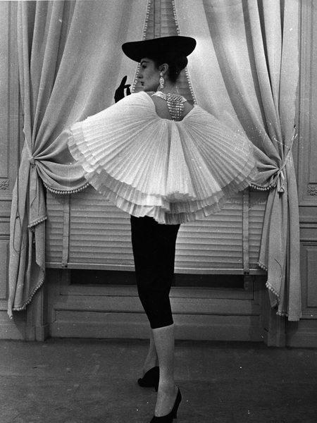 Фотография Генри Кларка, Vogue, 1 сентября 1955 года Модель позирует на презентации первой коллекции Ива Сен-Лорана Dior, Париж, 4 февраля 1958 года