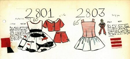 Джозеф Лав, платья для девочек, гуашь, тушь, 1953 год