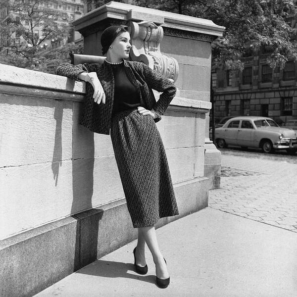Дориан Ли в платье от Бонни Кэшин, фотография Сесила Битона, 1 апреля 1950 года Модель 1950-х годов в твидовом костюме на фотографии Джозефа Леомбруно, 1 июля 1951 года
