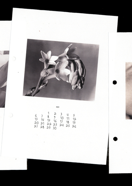 Метафорой календаря стал фотоальбом. Я отобрала 12 фотографий Имоджен Каннингем и буквально поместила их в фотоальбом, изобразив календарную сетку, как подписи от руки на полях.