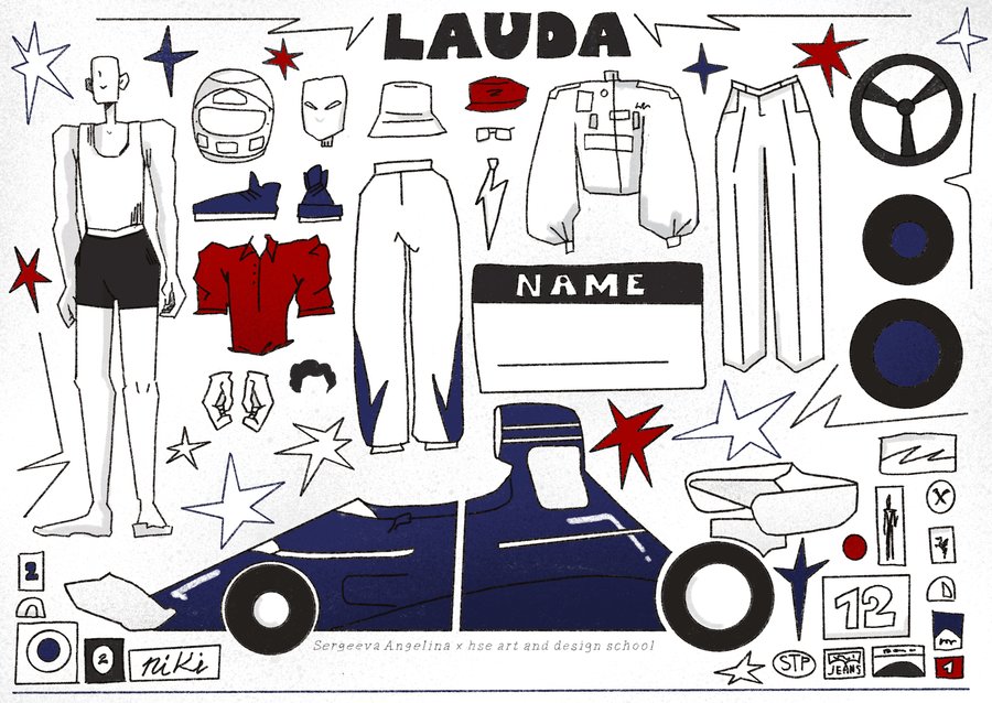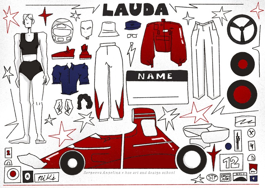Темой серии стал Ники Лауда, трехкратный чемпион F-1, который прославился, в частности, тем, что чуть не сгорел заживо на гоночной трассе в 1976 году. Его личность примечательна еще и тем, что, пройдя всего 42 дня реабилитации, он вернулся в гонки в этот же сезон. Это очень целеустремленный человек с невероятной силой духа, и узнав об его истории на первом курсе, я была крайне поражена и замотивирована. В серии я хотела отобразить не только его личные качества, но и поработать с формами, присущими его деятельности: гонками, машинами и не только с аварией 1976 года. Было интересно поискать что-то машинное в характере гонщика, и нечто человеческое в машине.