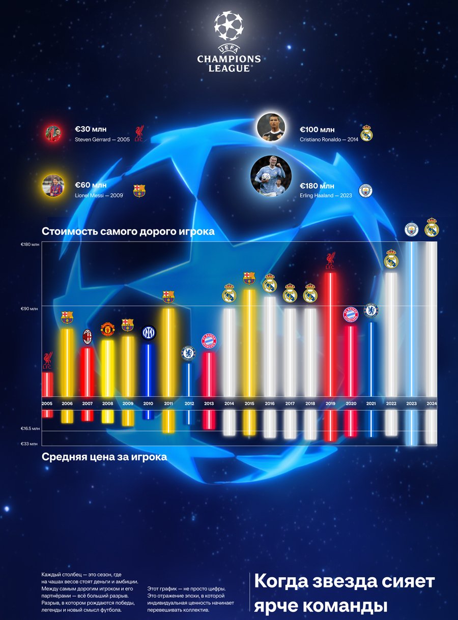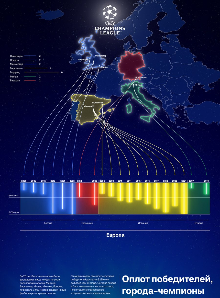 От географии побед до роста цен на игроков — каждый постер раскрывает скрытую сторону футбольной индустрии.
