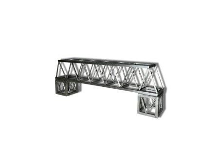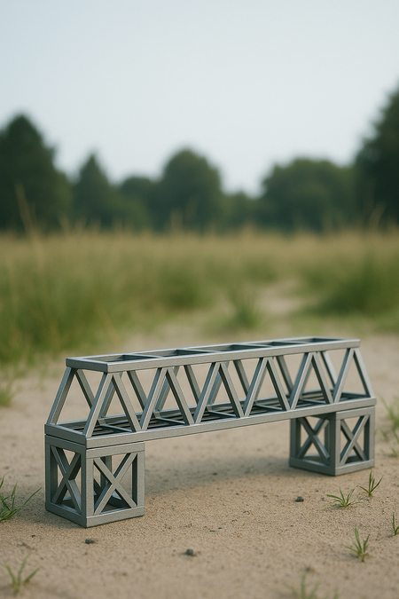 Этот мост художественная интерпретация контраста между материальной природой и визуальной иллюзией. Основанный на традиционных деревянных конструкциях, он создан так, чтобы выглядеть как металлический инженерный объект, но на самом деле является теплым, живым материалом деревом. Поверхность, окрашенная аэрозолью «металлик», создает обманчивое ощущение прочности и холода, характерное для стали, тогда как сама структура хранит в себе природное тепло и хрупкость.