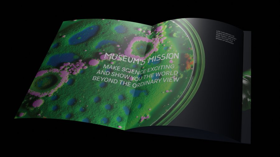 Сhat GPT предложил: «Можно построить новую айдентику на идее биолюминесценции — способности морских микросуществ излучать собственный свет. Тёмные оттенки синего и градиент передают ощущение подводной бездны, где свет становится редким и ценным. Металлические фактуры можно использовать как отсылку к исследовательскому оборудованию и подводным станциям — символам человеческого стремления познать невидимое. Сияние микросуществ становится символом научного открытия: даже в самых тёмных пространствах микромира рождается знание».