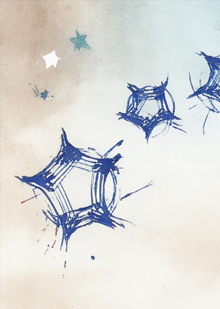 promt 1: many stars in MY-STARS style, thick lines, paper background, elegant symmetry promt 2: a constellation of MY-STARS style stars over watercolor background, dreamy atmosphere, light ink bleed