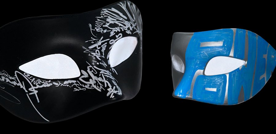 Со временем я понял, что настоящие суперсилы не появляются сами, их нужно создавать. Так возникла идея проекта, в котором я наношу написанные от руки буквы, слова и фразы на маски — полностью или частично. Для меня это метафора становления и перевоплощения героя, путь от фрагментов к целостности, от внутреннего импульса к внешнему проявлению. Каллиграфия становится визуальным отражением внутреннего голоса.