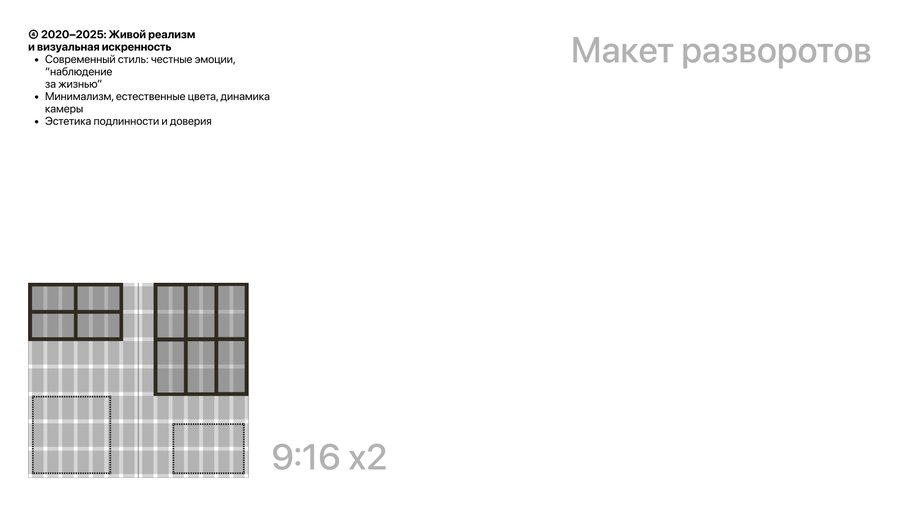 ➃ 2020–2025: Живой реализм и визуальная искренность - Современный стиль: честные эмоции, «наблюдение за жизнью» - Минимализм, естественные цвета, динамика камеры - Эстетика подлинности и доверия
