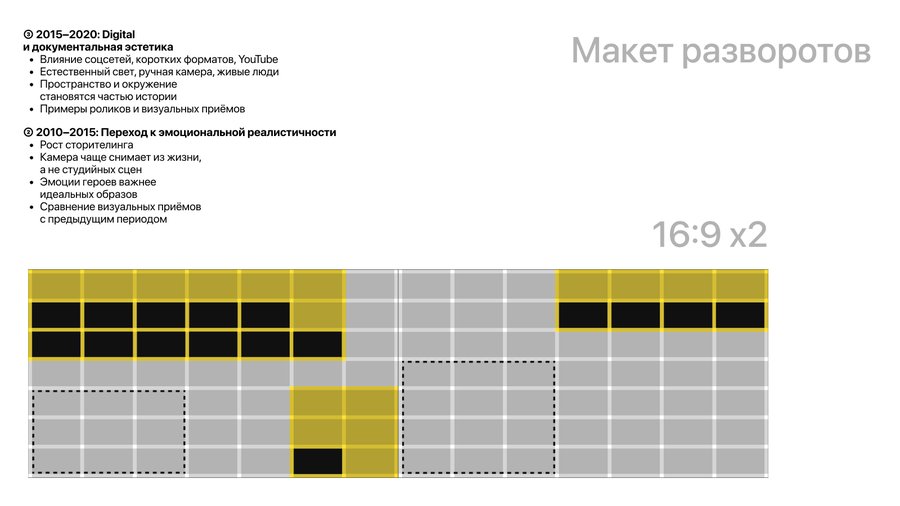 ➂ 2015–2020: Digital и документальная эстетика - Влияние соцсетей, коротких форматов, YouTube - Естественный свет, ручная камера, живые люди - Пространство и окружение становятся частью истории - Примеры роликов и визуальных приёмов