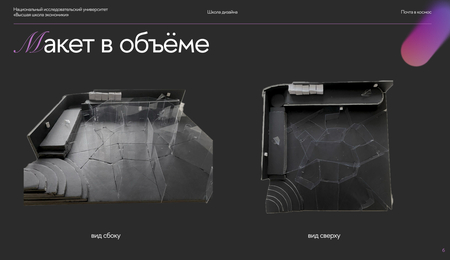 Мой проект посвящен пространству, где каждый может направить мысли «в космос». Я создала пространство «Почта в космос», где человек может почувствовать гармонию и спокойствие внутри себя. Каждый человек сталкивался с тяжелыми ситуациями. Иногда нам просто нужно выговориться, и в такие моменты мы можем открыться. Самое лучшее решение — описать или написать свои чувства на бумаге. А что же будет дальше с этими словами? Давайте отправим их в космос, чтобы наши чувства не пропали без следа, а были унесены в вечность, где ваши тревоги исчезнут, и останутся только там. В «Почте в космос» вы можете пройти лабиринт «созвездий», чтобы глубже погрузиться в себя, прожить свои чувства — и не обязательно негативные — окутать себя «космической» любовью. Именно пространство «Почта в космос» поможет вам с вашими чувствами, соединив вас с космосом.