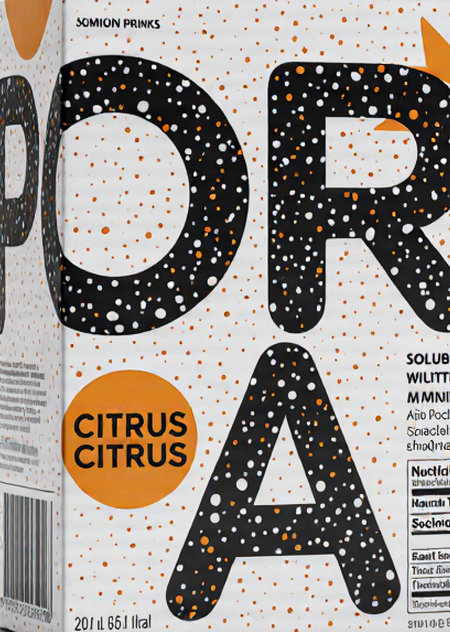 2 Create a realistic product rendering of a white cardboard box for a «PORA» soluble vitamin drink mix, Citrus flavor. The front of the box should feature the word «CITRUS» in a bold, black handwritten-style font, similar to the image provided. Include the words «SOLUBLE VITAMIN DRINK» and «IMMUNE SUPPORT» above the word «CITRUS.» Also, include the text «VITAMIN DRINKS FOR PERFECTLY IMPERFECT SKIN, WHICH WAS CREATED TO HELP PEOPLE EMBRACE THEIR NATURAL SELVES. WE’RE DITCHING THE FILTERS AND CELEBRATING REAL SKIN WITH DELICIOUS, NUTRIENT-PACKED BEVERAGES DESIGNED TO SUPPORT YOUR SKIN’S JOURNEY.» arranged at the bottom. Add a small orange accent circle with the text «IMMUNE SUPPORT» next to «CITRUS.» The side of the box should contain a detailed nutritional information table. Next to the box, show two individual silver foil sachets, each also featuring the «CITRUS» branding and text as shown in the reference image.