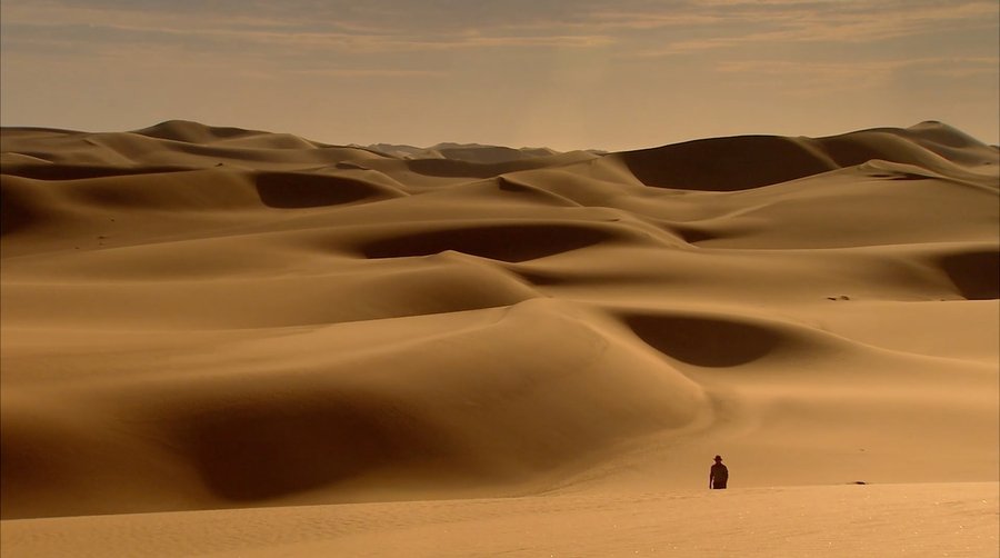 Эта фраза становится отправной точкой как для сюжетного, так и для визуального повествования во всех документальный мини-сериалах с Брайаном Коксом. Любое повествование имеет четкую человекоцентричность, ведя рассказ именно с позиции людей. В контексте документальных работ о космосе такое направление особенно важно, потому что помогает перенести научную теорию из категории абстрактного во что-то более осязаемое. При таком формате подачи материала важно сделать акцент на фигуре человека в контексте самой Вселенной. И с этим хорошо справляется природа. Самым главным ее качеством становится показать, во-первых, насколько огромна Вселенная по отношению к человеку, во-вторых, ее буквальную безграничность в масштабах, и в-третьих, как мало о ней знает человечество. Все эти пункты на самом деле сводятся к передачи ощущения того, что зритель находится один в бескрайнем пространстве без четкого понимания своего окружения, но при этом чувствуя свою роль максимально незначительной в отношении такого окружения. Буквально частичкой в океане.
