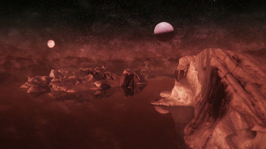 Начнем с рассмотрения самого очевидного способа — использования природы как базы для создания пейзажей других планет. Здесь можно обратиться к материалам студии по созданию визуальных эффектов «Lola», которая делала большую часть графики для «Вселенной» и «Планет» [1]. В качестве основных пейзаже были взяты кадры, снятые в Исландии и Норвегии. Именно эти локации были выбраны, потому что в них присутствует максимально пустынный, загадочный и нетронутый облик, который ассоциируется с поверхностью других планет.