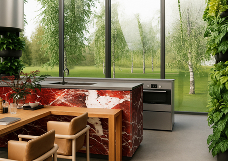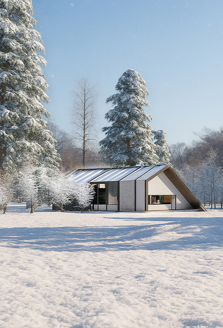 Проект дома для шеф-повара, расположен на Севере России в регионе Карелия. Регион славится мраморными каньонами, а его деревом-символом является карельская береза. Поэтому в оформлении фасадов используется черно-белая гамма, а в интерьере акценты из красного мрамора. Важной частью дома является оранжерея, которая позволяет шефу выращивать свежую зелень для своих блюд.